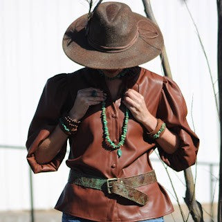 Turquoise & Brown Embossed Genuine Leather Belt