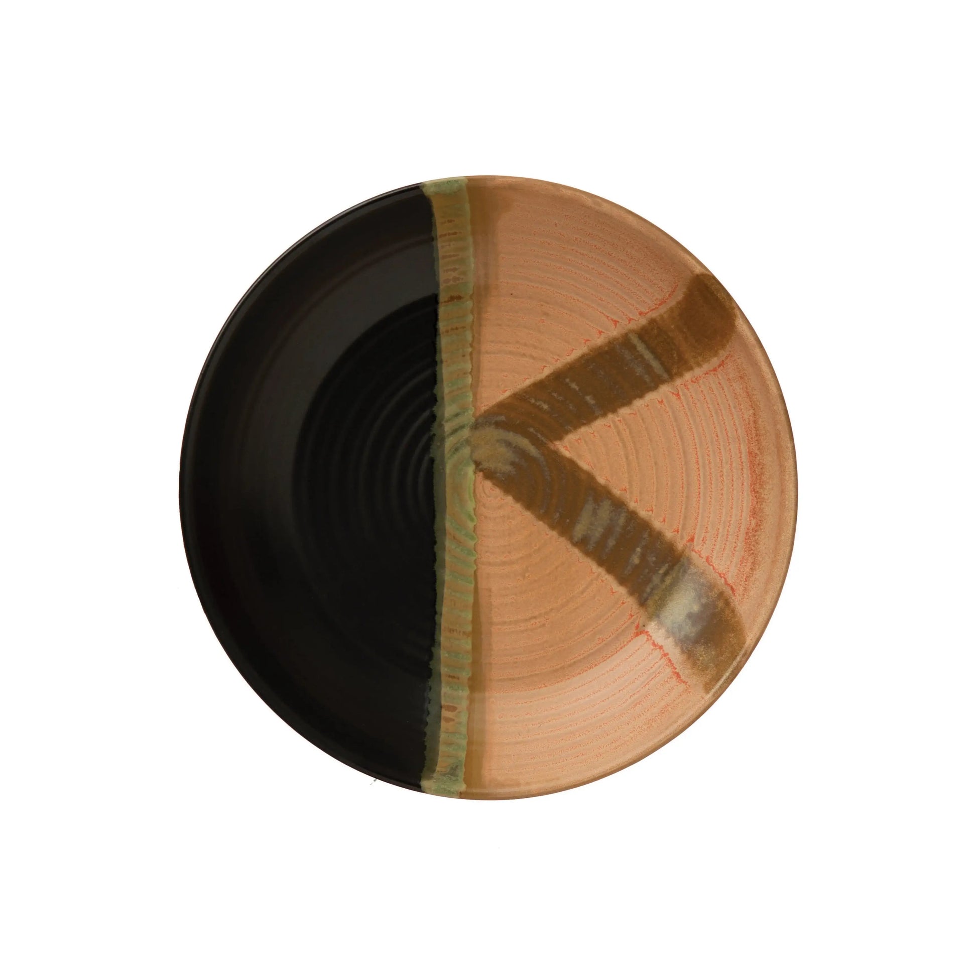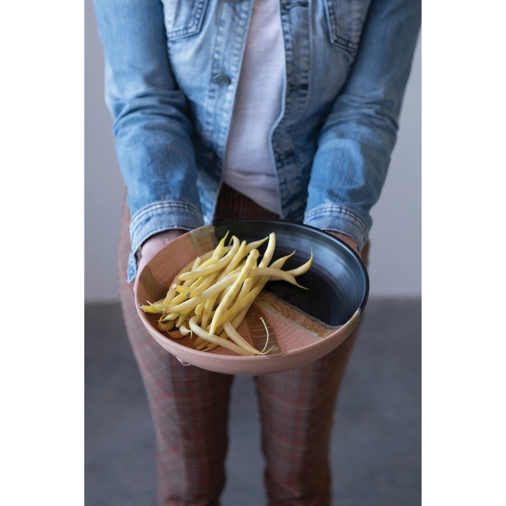 Reactive glaze stoneware bowl, multi-color (each one will vary). Microwave and dishwasher safe.