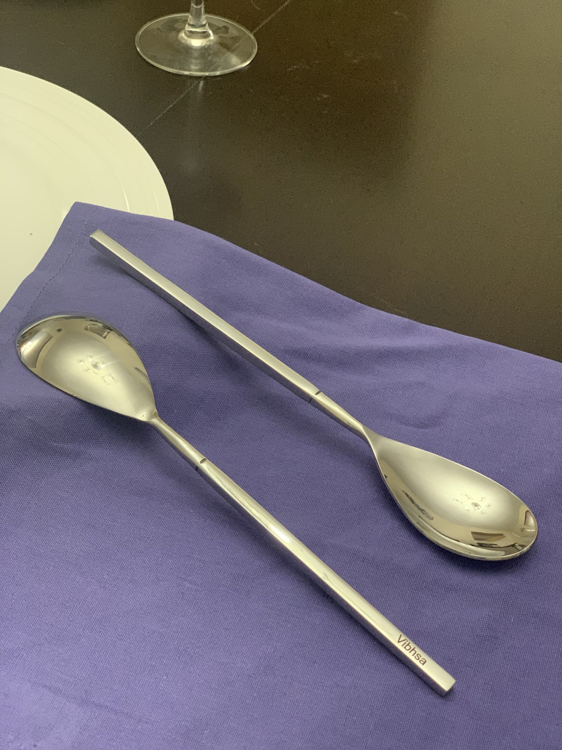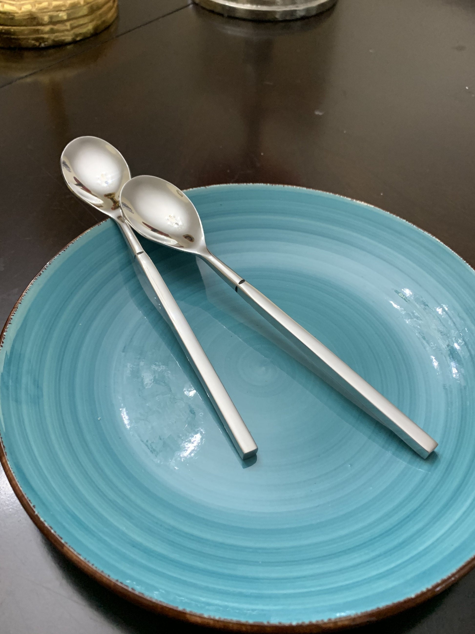 Set Includes 6 pieces of 9” dinner spoons . Highly polished flatware set with shiny and mirror finishing. Total Weight of this set is about 11 oz. Handmade cutlery set by skilled artists. Dish washer safe, top rack only. Hand wash and dry recommended for long lasting shine and polish.