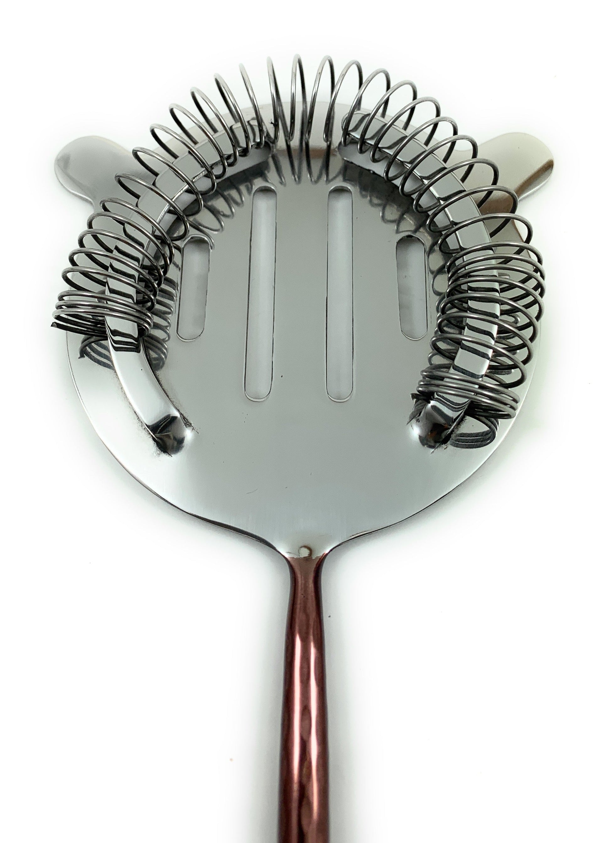 This handmade bar tool accessory is designed by artisans in silver and Copper Color combination. The handle of these tools are hammered and has pvd coating in Copper color. The shape of handle is little pointed and sleek but sturdy. These are dishwasher safe and food safe.