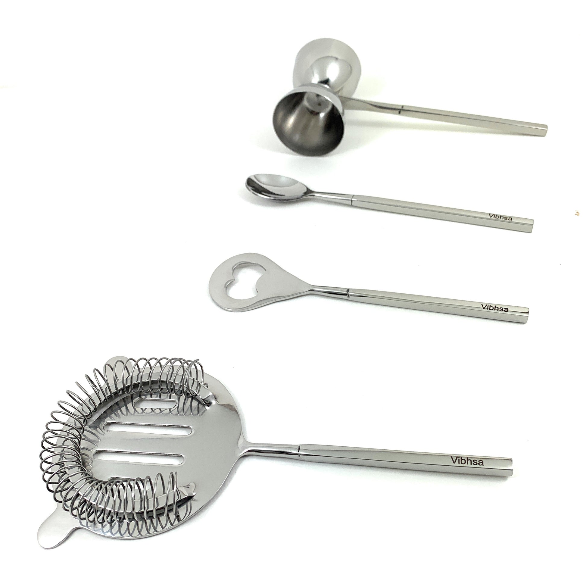 Vibhsa Bar Tools Accessories & Bartending Kit set of 4 for Home Bar (Silver)