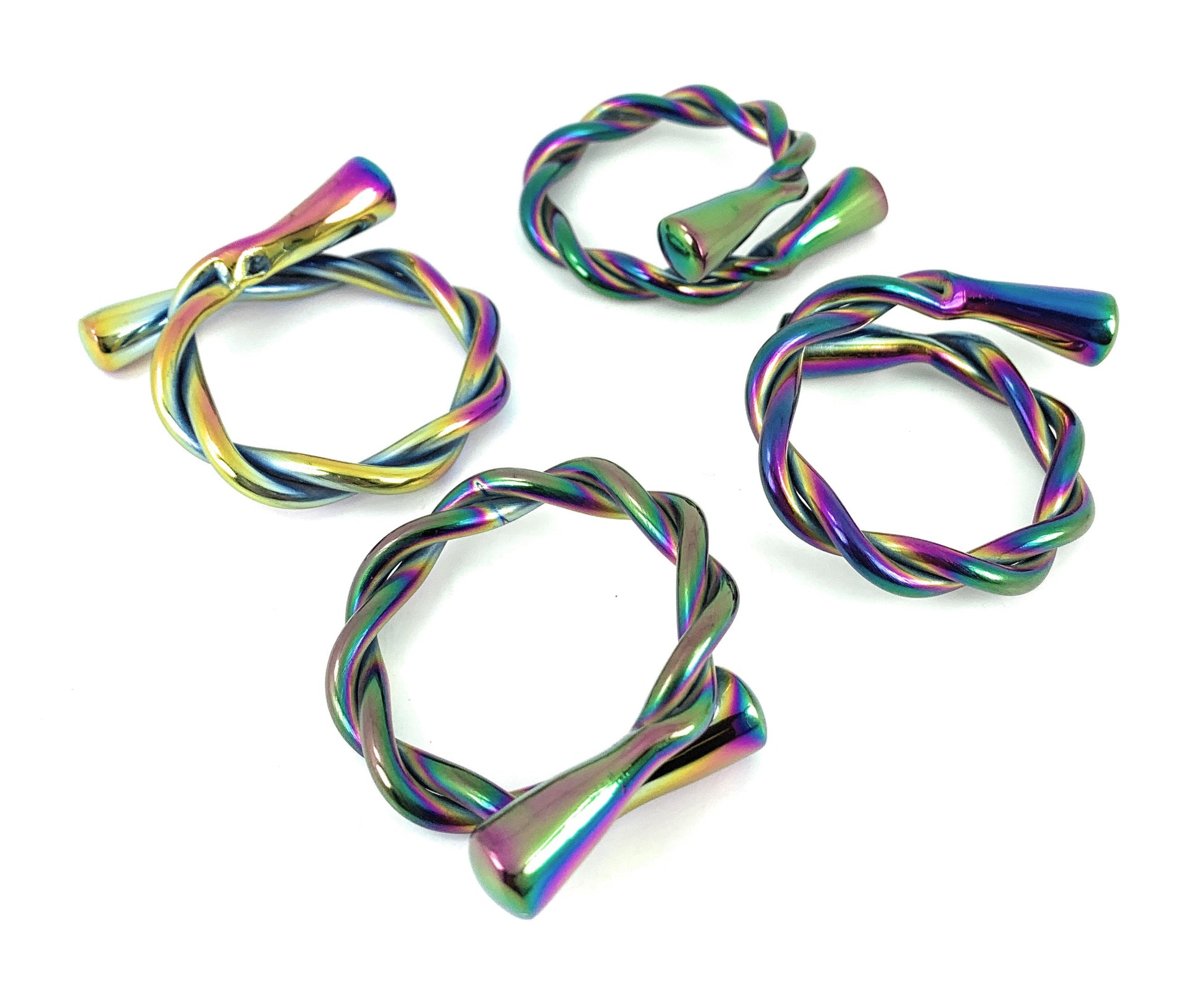 Handcrafted luxurious multi color twisted napkin rings set of 4. Glossy finish with long lasting.