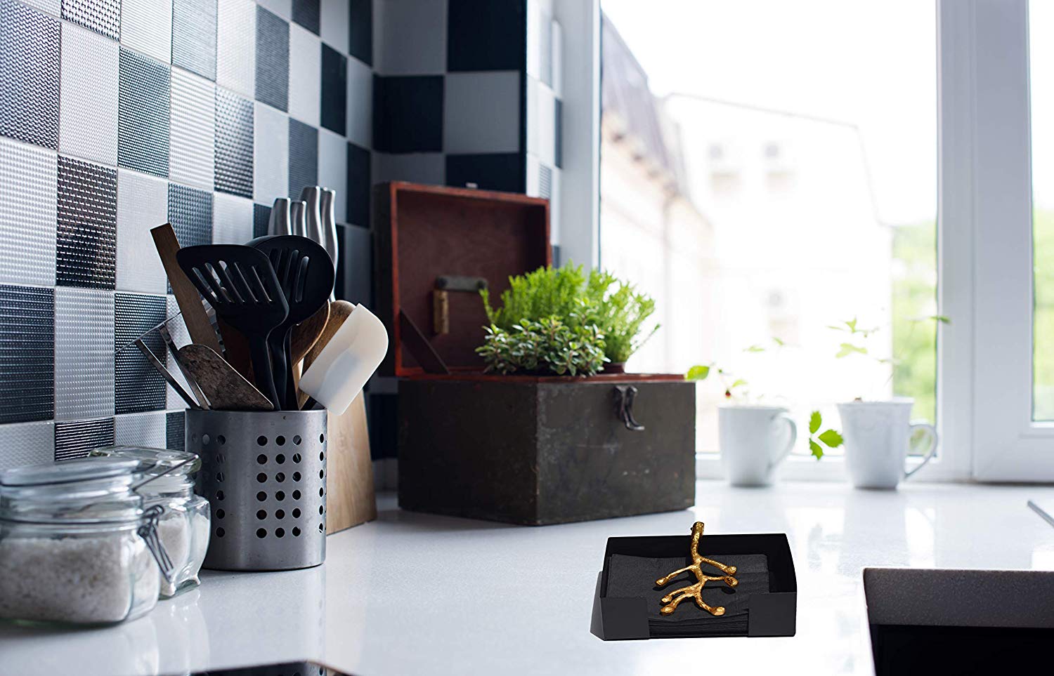 Vibhsa Napkin Holder Dinning Decor (Golden Olive Bud)