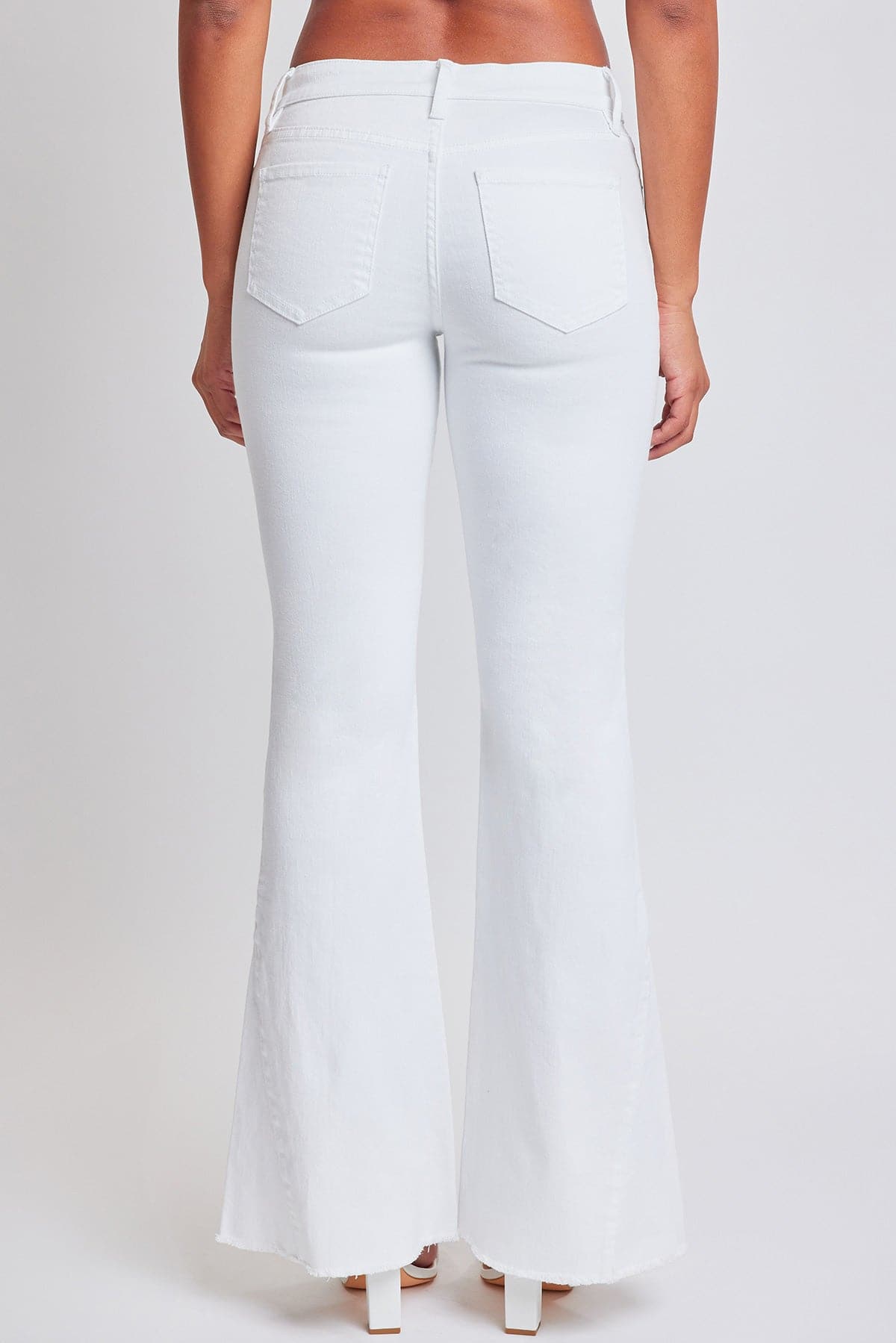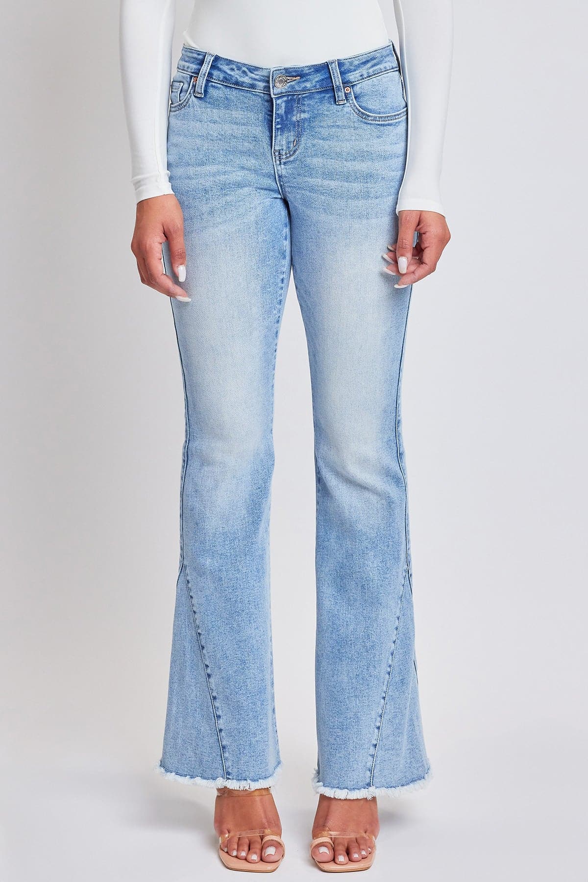 Step out in style with our Juniors Low Rise Frayed Flares. Fitted at the waist and hips with a bellbottom leg opening. Perfect for casual and dressy occasions alike. Rock these pants with confidence and show off your unique fashion sense. You'll be the talk of the town (in a good way, of course)!