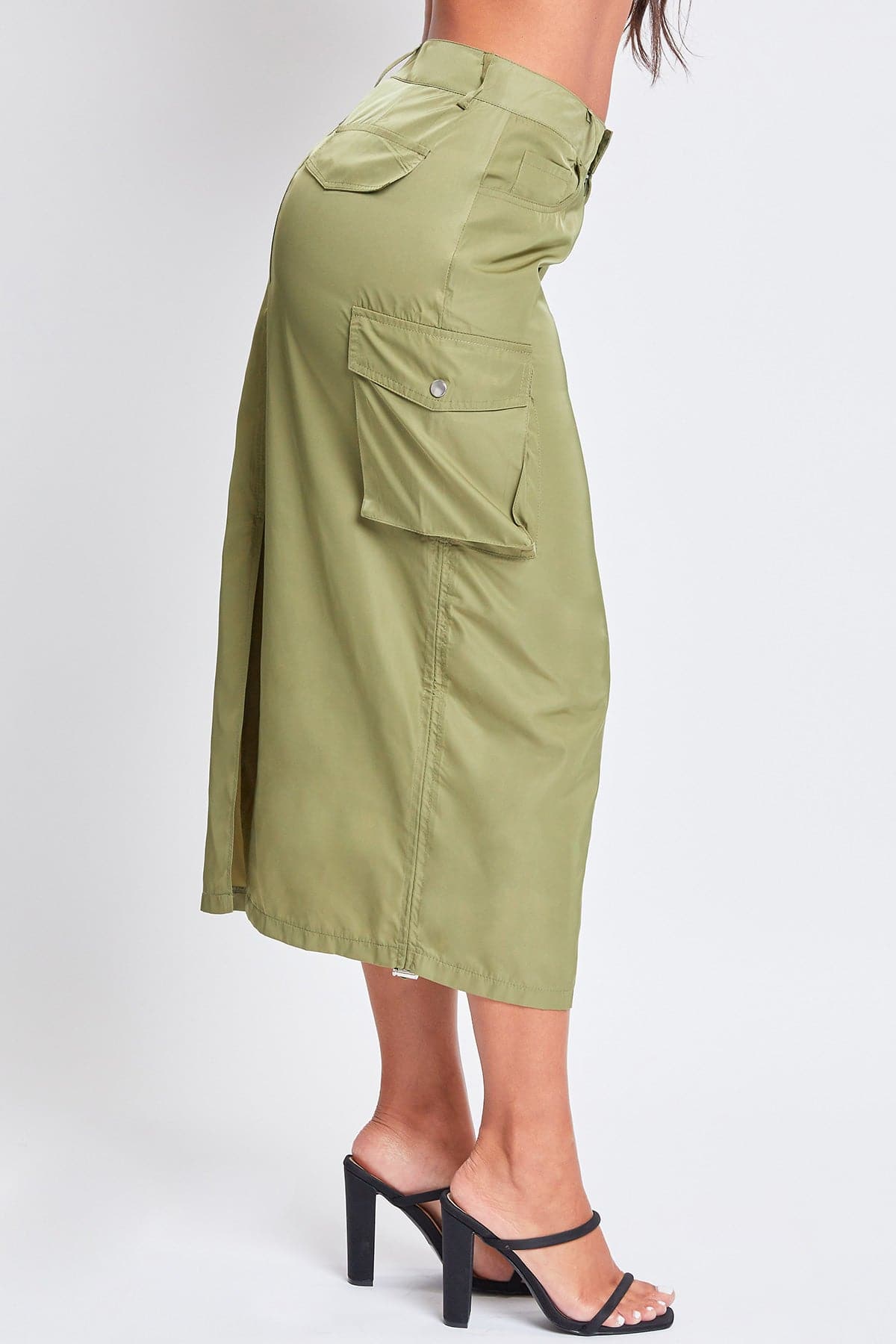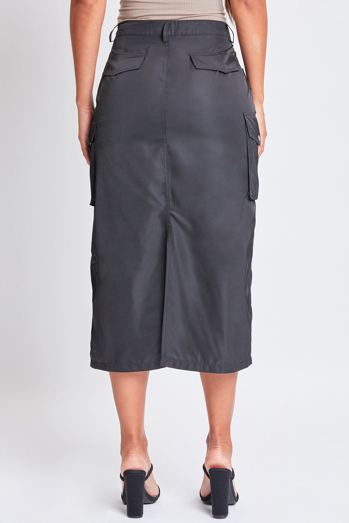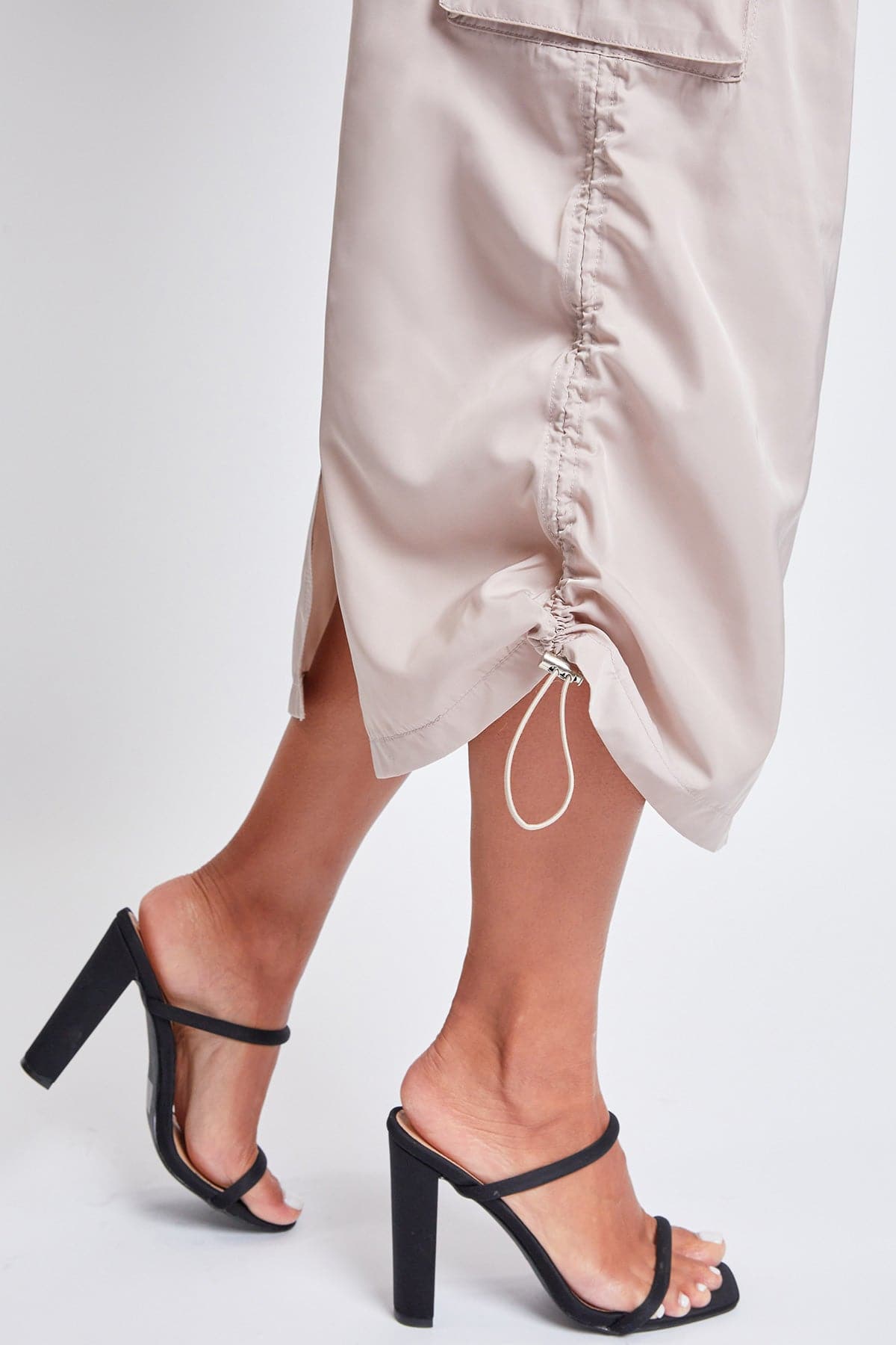 Take your style to the max with our Women’s Maxi Cargo Skirt. This trendy nylon skirt hits above the ankle for a maxi silhouette and features five-pocket styling with faux flap pockets in the back, snap button cargo pockets at the side, and a slit hem at the back for ease of movement. Detailed with bungee ties at the hem for optional ruching, belt loops, and a front zip fly with a snap button closure. Style with a fitted top and sneakers for an on-trend streetwear look we are loving right now!
